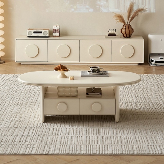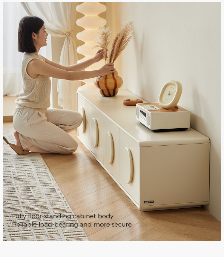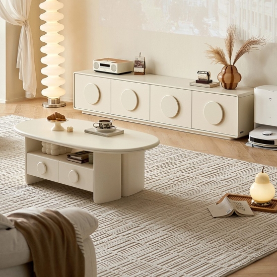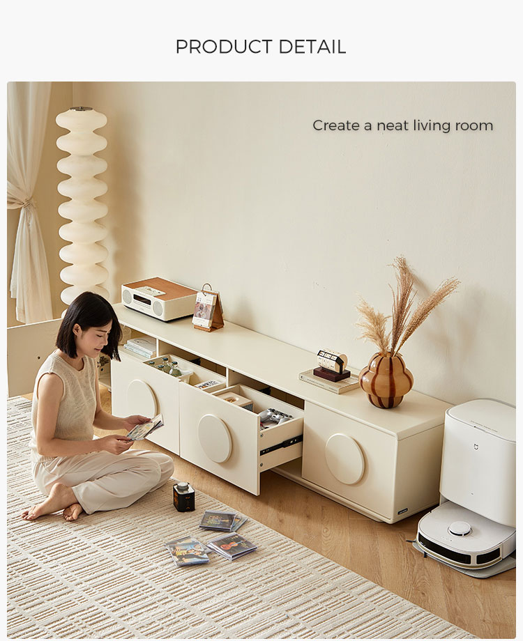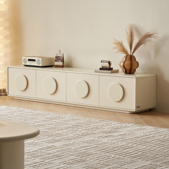 Diseñada para realzar tu espacio de entretenimiento, esta consola de TV en suave color crema combina minimalismo de inspiración escandinava con almacenamiento funcional. Sus líneas limpias y su cálido tono neutro crean una base versátil tanto para pantallas planas de 65" como para una decoración del hogar cuidada.