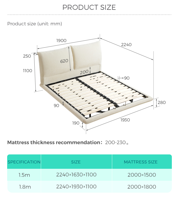 1800*2000 milímetros |